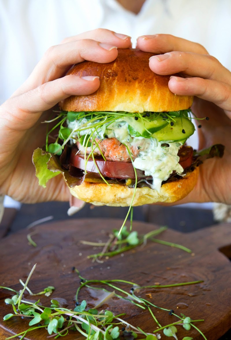 Sumac and Thyme Salmon Burgers Wild Greens and Sardines